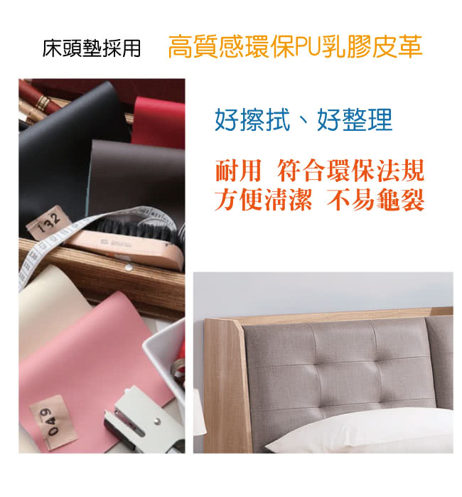 環保PU皮革+防蛀木心板等材質,結構牢固耐用,也不用擔心蟲蛀的煩惱,使用放心